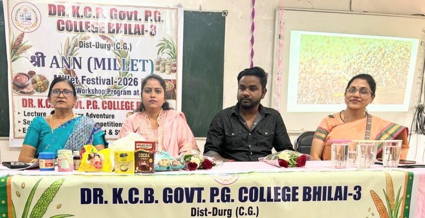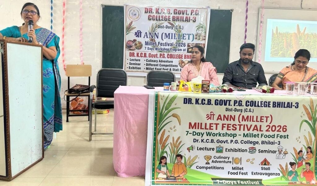 भिलाई, डॉ. खूबचंद बघेल शासकीय स्नातकोतर महाविद्यालय, भिलाई-3 में स्वास्थ्य एवं पोषण के प्रति जागरूकता बढ़ाने तथा पारंपरिक अनाजों के महत्व को प्रोत्साहित करने के उद्देश्य से सात दिवसीय ‘मिलेट्स प्रशिक्षण कार्यशाला” का आयोजन किया जा रहा है।