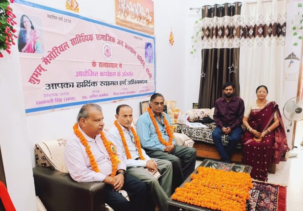 भिलाई, बरेली, शुभम् मैमोरियल साहित्यिक एवं सामाजिक संस्था की अध्यक्ष सत्यवती सिंह सत्या ने मासिक काव्य गोष्ठी व सम्मान समारोह का आयोजन मनोज सक्सेना के निवास इंद्रानगर में मशहूर शायर विनय साग़र जायसवाल की अध्यक्षता में आयोजित किया ।