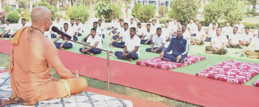 भिलाई, दुर्ग पुलिस के अधिकारी व कर्मचारियों के लिए आज योग एवं मानसिक स्वास्थ्य पर विशेष सत्र का आयोजन किया गया। बिहार स्कूल ऑफ योगा के अध्यक्ष स्वामी शिवध्यानम सरस्वती ने इसमें मार्गदर्शन दिया। उन्होंने तनाव प्रबंधन एवं सकारात्मक जीवन दृष्टिकोण पर व्यावहारिक जानकारी प्रदान की। लगभग 100 अधिकारी कर्मचारी उपस्थित रहे।