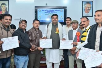 छत्तीसगढ़ शासन स्कूल शिक्षा विभाग के सचिव के निर्देशानुसार सत्र 2025-26 की शुरुआत में सेजस चरोदा में शाला प्रवेशोत्सव समारोहपूर्वक आयोजित किया गया। प्रारंभ में मुख्य अतिथि राजमहंत डोमन लाल कोर्सेवाडा़ विधायक विधानसभा अहिवारा, अध्यक्ष एसएमडीसी विश्वनाथ सिन्हा, विधायक प्रतिनिधि अंकिता बैनर्जी, वार्ड पार्षद अपर्णा दास, समाजसेवी सुब्रतो दास ने मां सरस्वती के तैल चित्र पर माल्यार्पण व दूध-दीप प्रज्ज्वलित किया। सरस्वती वंदना के पश्चात् मुख्य तिथि डोमन लाल कोर्सेवाड़ा ने कक्षा पहली और छठवीं में नवप्रवेशित बच्चों के मस्तक पर गुलाल लगाकर मुंह मीठा किया और छत्तीसगढ़ शासन से द्वारा प्राप्त निशुल्क पुस्तक भेंट कर प्रवेशोत्सव में स्वागत कर अपनी हथेलियों का रंगीन छाप सादे कैनवास पर लगाया। प्राचार्य जे.पी. श्याम ने प्रतिवेदन प्रस्तुत करते हुए शाला की अकादमी एवं भौतिक विकास को उल्लेखनीय बताया ।