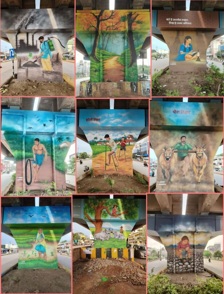 भिलाई। छत्तीसगढ़ की सांस्कृतिक विरासत, लोक कला और परंपराओं को संरक्षित व सजीव करने की दिशा में भिलाई नगर निगम ने एक सराहनीय पहल की है। महापौर नीरज पाल और आयुक्त राजीव कुमार पांडेय के मार्गदर्शन में सुपेला ओवरब्रिज के पिलरों पर छत्तीसगढ़ की संस्कृति, पर्व-त्योहार, लोकजीवन और सामाजिक संदेशों से जुड़ी भव्य पेंटिंग्स बनाई जा रही हैं।
