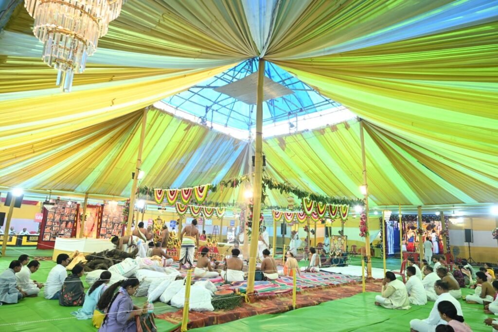 यज्ञ मंडप में तमिलनाडु से आमंत्रित श्री रामनादा गुरुक्कल एवं उनकी वेदाचार्य टीम द्वारा महा संकल्प के साथ पूजा संपन्न करवाई गई। मंत्रोच्चार और देवी आवाहन के दौरान जब हजारों श्रद्धालुओं ने “जय मां दुर्गा” और “जय जय कार्तिकेय” के जयकारे लगाए, तो पूरा पंडाल मंगल ध्वनि से गूंज उठा।