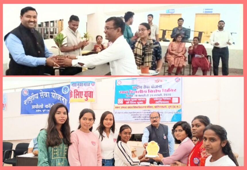 भिलाई, डॉ. खूबचंद बघेल शासकीय महाविद्यालय, भिलाई 3 के एनएसएस इकाई (बालक एवं बालिका) द्वारा हेमचंद यादव विश्वविद्यालय की पोटिया कला स्थित नई बिल्डिंग परिसर में 18 फरवरी से 24 फरवरी तक सात दिवसीय विशेष आवासीय शिविर, तीन और महाविद्यालय के एनएसएस इकाइयों के संयुक्त तत्वावधान में संपन्न हुआ l