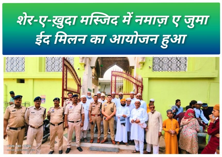 भिलाई। शेर-ए-ख़ुदा मस्जिद में शुक्रवार को बाद नमाज़ ए जुमा ईद मिलन का आयोजन किया गया। जहां मौजूद तमाम मेहमानों ने एक बेहद खूबसूरत और रूहानी माहौल सेवईंयो की मिठास के साथ ईद की मुबारकबाद पेश की गई। सदर हाजी ताहिर सिद्दीकी की ओर से यह एहतमाम किया गया। नमाज़ के बाद लोग एक दूसरे से गले मिले और दुआओं का सिलसिला चलता रहा।