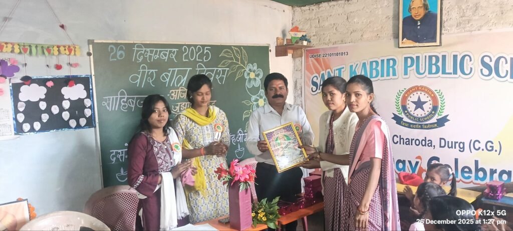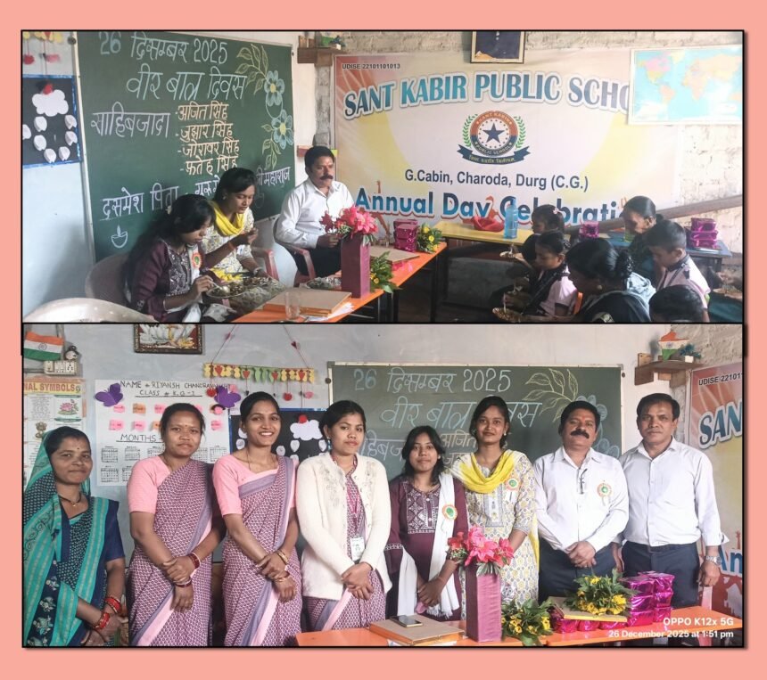 भिलाई, चरोदा, संत कबीर पब्लिक स्कूल, जी केबिन में शुक्रवार को वीर बाल दिवस का आयोजन श्रद्धा और उत्साह के साथ किया गया। कार्यक्रम में मुख्य अतिथि अजय पाठक, व्याख्याता शासकीय उच्चतर माध्यमिक विद्यालय टाटेंगभरदा, जिला बालोद रहे। विशिष्ट अतिथि के रूप में महिमा नेताम एवं भावना पटेल उपस्थित रहीं।